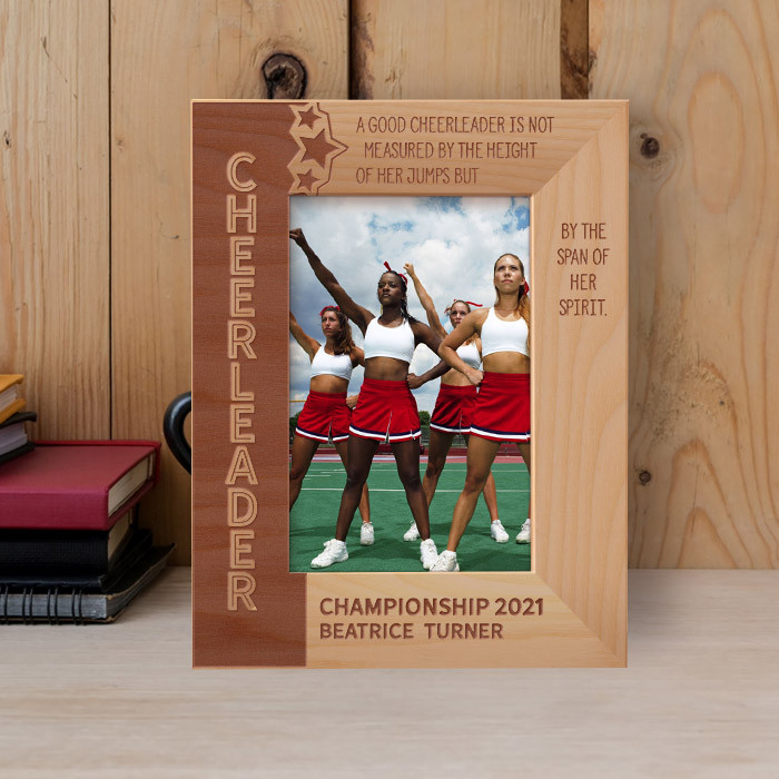 With this personalized wooden frame displaying your favorite cheerleading photo is has never been this easy. You can hang the picture in your living room or show off the frame at work. You can display the frame both horizontally and vertically. Other than this, what makes this cheerleading frame an exceptional gift is that it is highly customizable. You can get one in any size or shape.