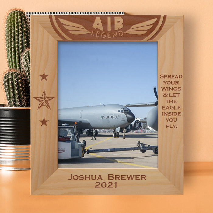 This personalized air force wooden frame is an ideal gift choice because it can easily be put for table top display vertically or horizontally, and hung on the wall as well. This personalized air force frame comes in a variety of sizes and shapes too. Therefore you can display your best photograph with a high-quality frame like this one.