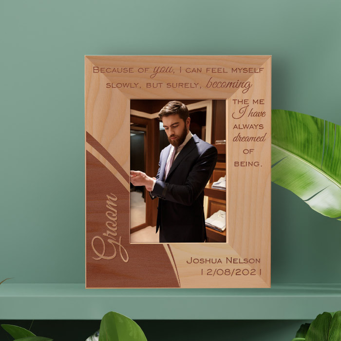 Is your friend getting married, or is his wedding day near, and you want to give him a unique gift? Does he enjoy having a nice frame in their room? Then you must get him this personalized frame, which, should be dear to his heart. This frame for groom is completely adjustable and comes in a variety of sizes and forms. As a home décor item, you may put this wonderfully designed frame anywhere you choose.