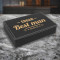 This Personalized 6 Oz Black/Silver Laserable Leatherette Flask Gift Set makes great wedding, house warming, mortgage client and real estate client gifts. The laser engraving on the box personalization area can be customized to fit the occasion.