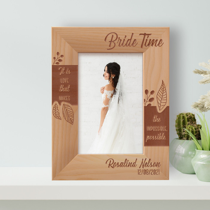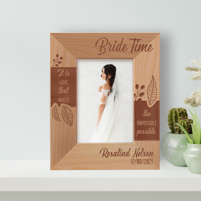 This personalized bride frame allows you to modify it in any manner you desire. As a result, presenting the gift to that special someone will undoubtedly brighten their day! This high-quality, personalized frame is available in a range of sizes and forms.