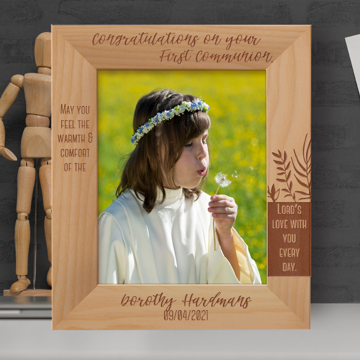 A frame built to keep precious memories safe. This personalized frame for my first communion is an elegant frame made of high-quality wood. This makes the frame extremely durable and long lasting. It is a beautiful and thoughtful gift to get someone special who just took the most important step in their religious life.