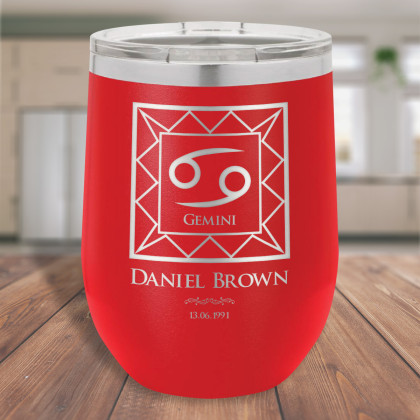 Custom Birthday Tumblers with Lids, Zodiac Gift, Red Vacuum Insulated Tumbler 12 Oz, Engraved Birthday Gift
