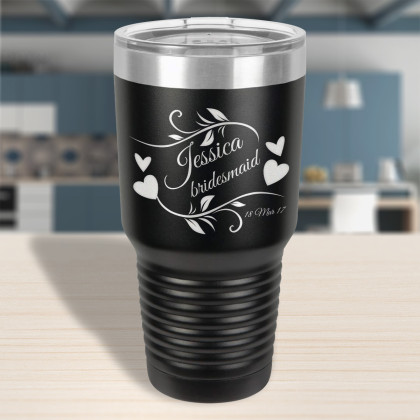 Custom Tumblers for Bridesmaids, Black Vacuum Insulated Bridesmaid Tumbler, Personalized Bridesmaids Gifts