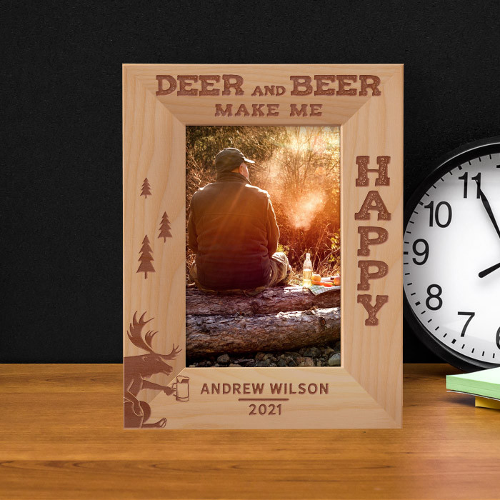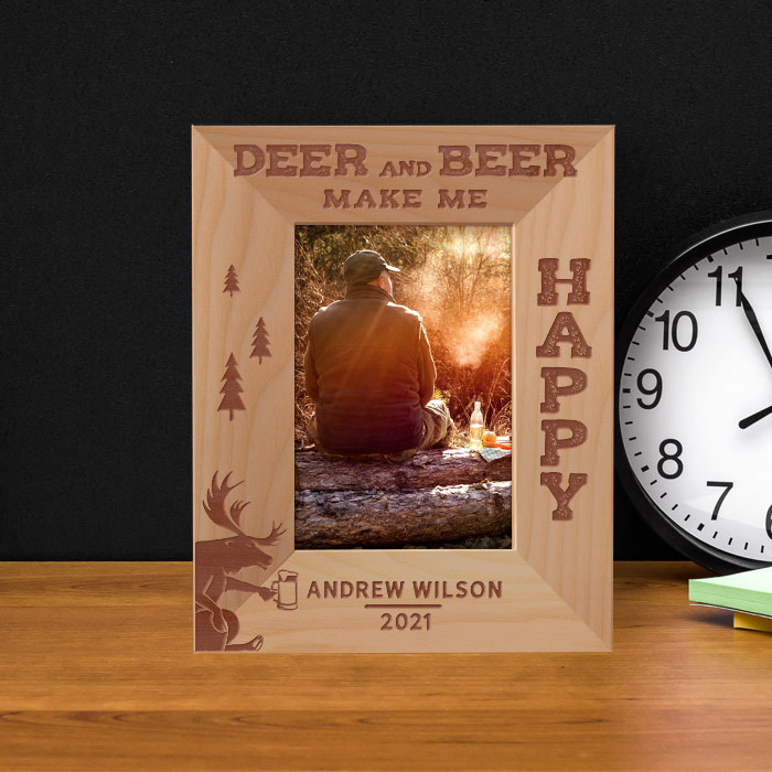 Deer And Beer Make Me Happy Personalized Wooden Frame