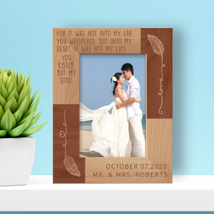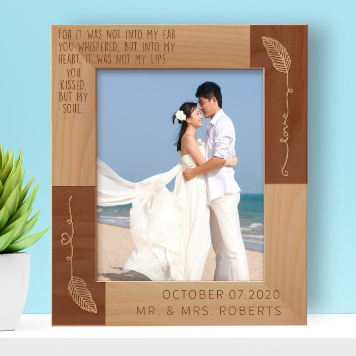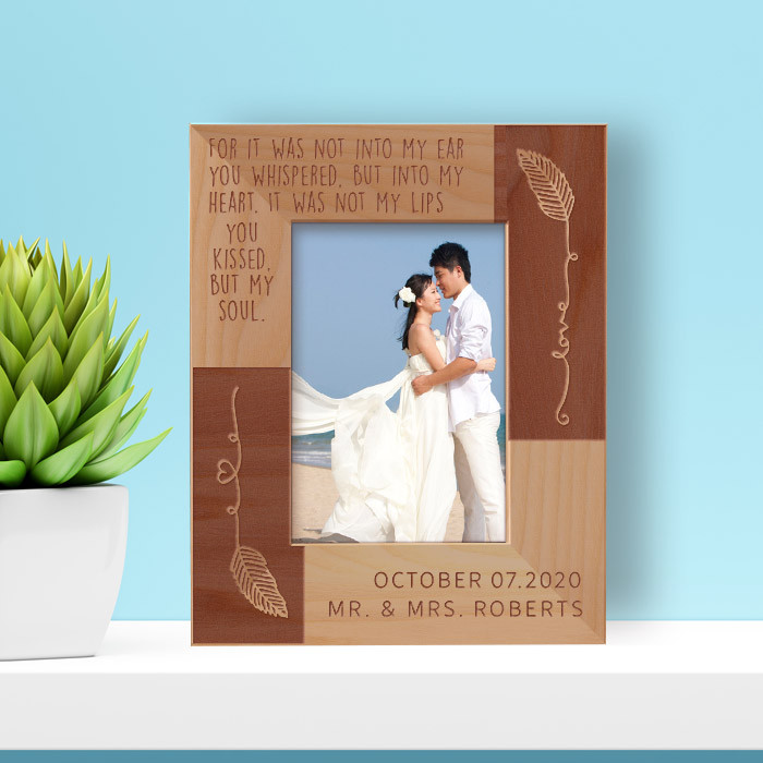 Are you looking for the perfect wedding frame? Well, this personalized wedding frame is what you need! It has a beautiful design that is unique and stylish. It is made of high-quality wood that makes it highly durable and long lasting. Your wedding photo is of great value. Therefore, you definitely need a well-crafted frame to make sure the photo is preserved. Well, this personalized wedding frame is the your best choice!
