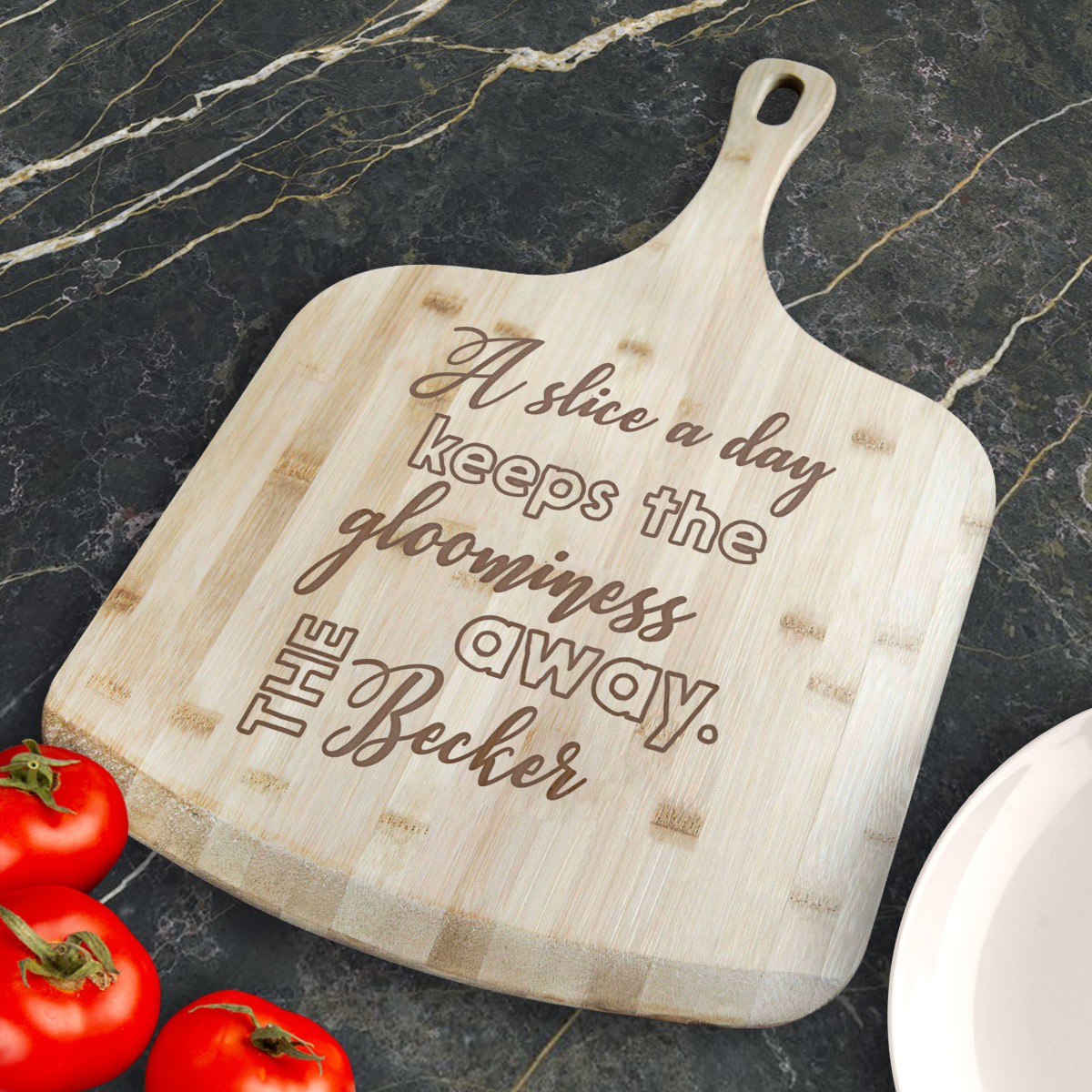 Personalized A Slice A Day Keeps The Gloominess Away Bamboo Pizza Board With Handle, Customized Wooden Pizza Board