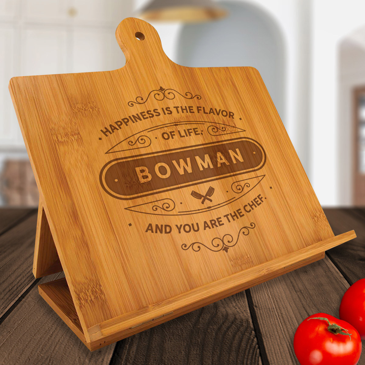 Personalized Happiness Is The Flavor Of Life And You Are The Chef Bamboo Standing Chef's Easel, Customized Recipe Cookbook Holder