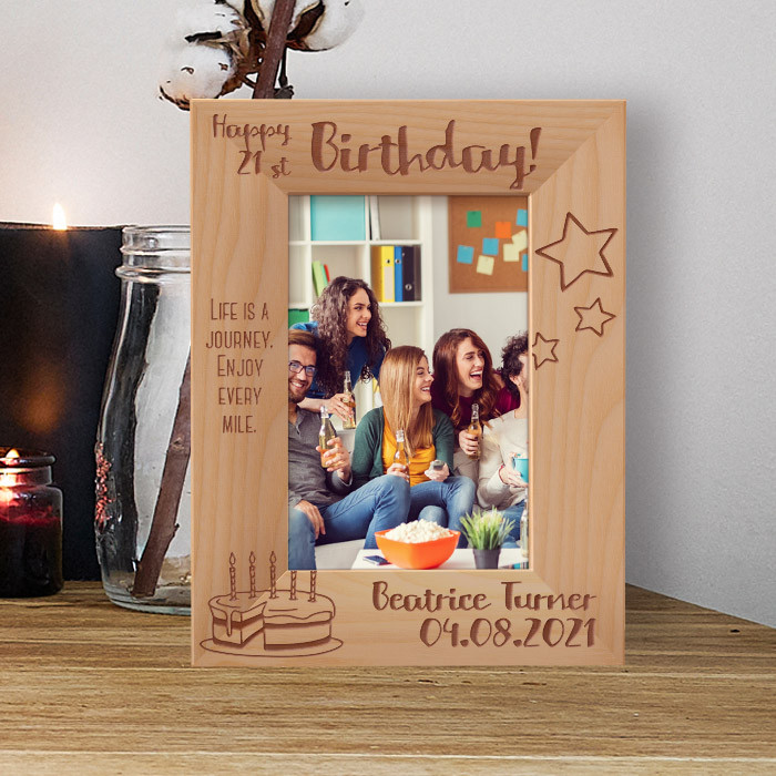 Happy 21st Birthday! Life Is A Journey Enjoy Every Mile Personalized Wooden Frame