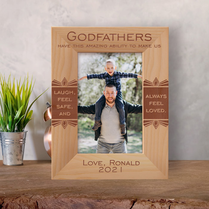 Finding a gift for your godfather may seem like a tedious task. How does one express their love to them with a gift? Well, the gift needs to be meaningful, expressive, and thoughtful. This is why when purchasing a gift for your godfather; you need to purchase this personalized wooden godfather frame.
