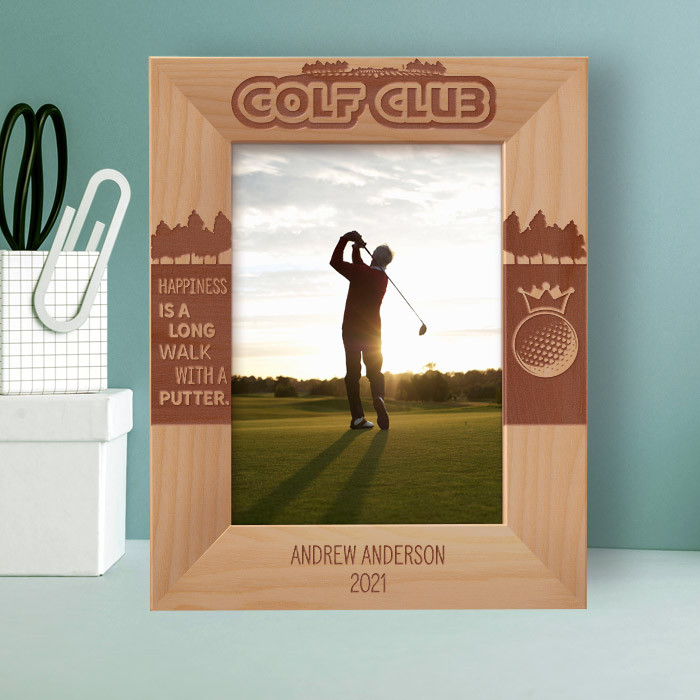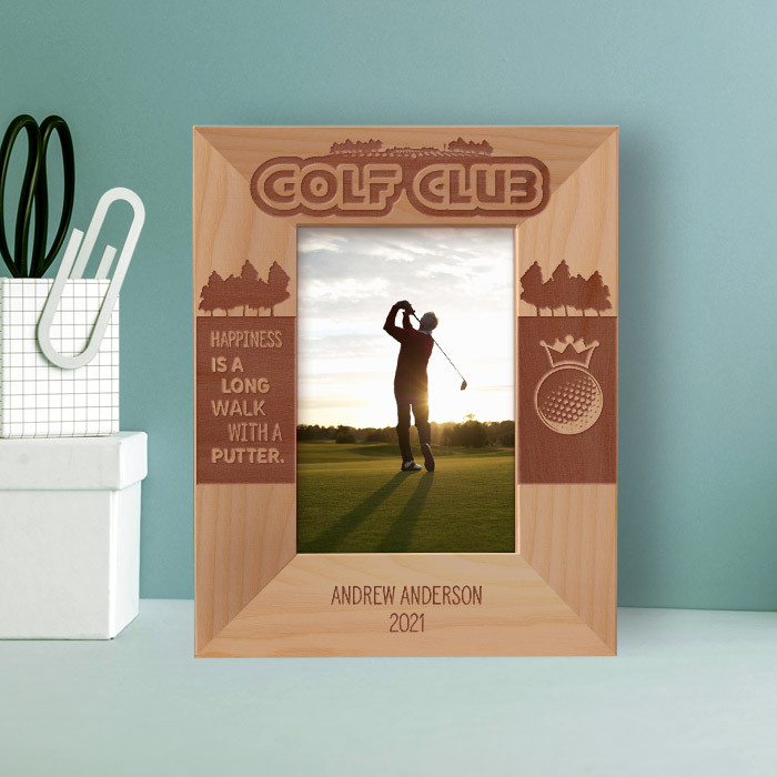 Golf Club Happiness Is A Long Walk With A Putter Personalized Wooden Frame