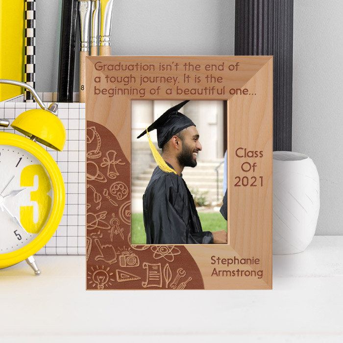 Are you in search for a gift for someone who just graduated? Finding the perfect gift can be quite a tedious task. However, all you need to do is purchase a product that is sweet, thoughtful and showcases you made an effort to make someone happy. This personalized frame is an ideal graduation gift because not only is it made of high-quality wood, but you can customize it as you wish.