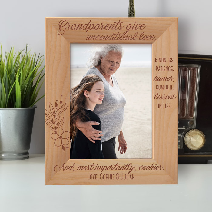 Grandparents Give Unconditional Love And Most Importantly Cookies Personalized Wooden Frame