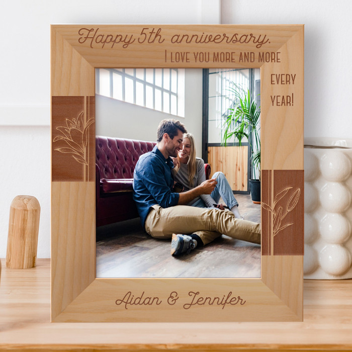 Happy 5th Anniversary I Love You More And More Every Year Personalized Wooden Frame