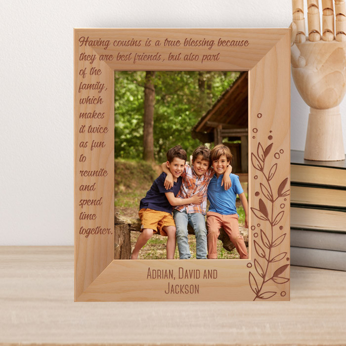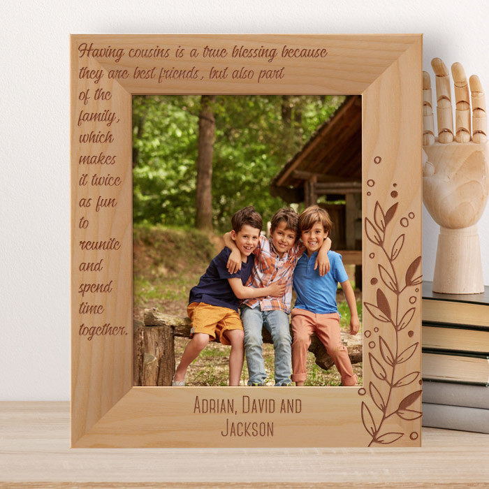 It comes with two easy to use options; you can hang the personalized frame on the wall or make it stand on any flat surface. Since it is a frame made of high-quality wood and crafted with perfection, it is something your cousins would love to display at their home.