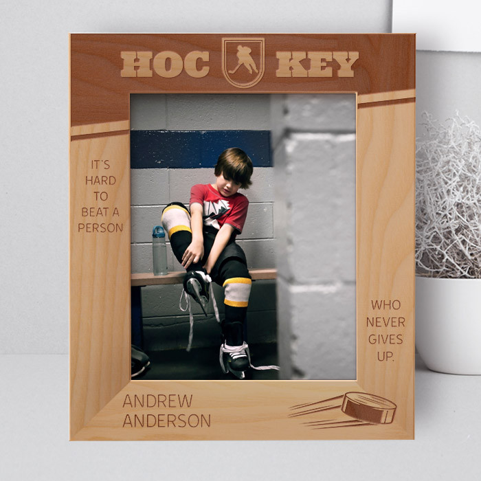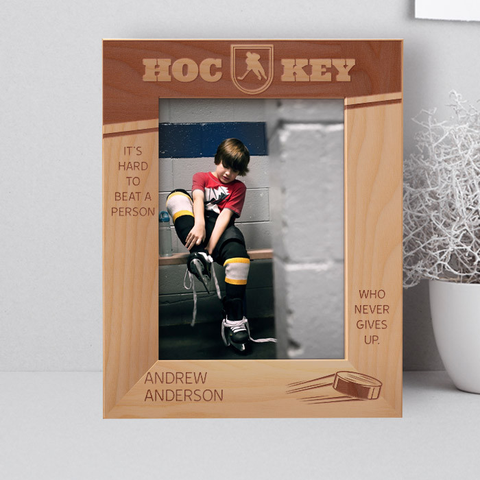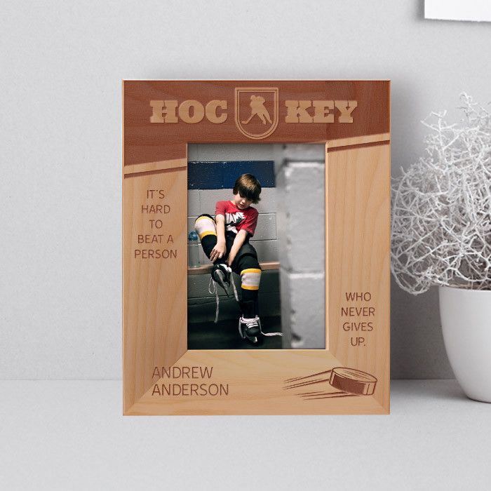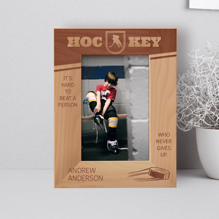 Hockey It's Hard To Beat A Person Who Never Gives Up Personalized Wooden Frame