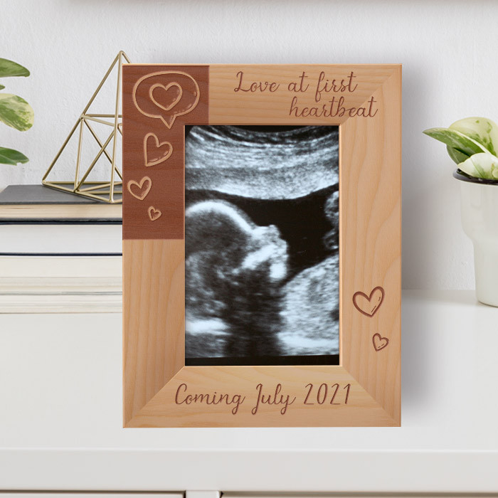 If you have an ultrasound picture of your baby boy or girl and want something to keep it safe and also be able to display it for you to view. You surely must purchase this personalized frame for ultrasound. This wooden frame is a must-have because it has a unique design and style. Also, it is made of high-quality wood which makes it very durable. Therefore, not only will it keep your photo preserved but also allow you to display it in a beautiful and sweet manner!