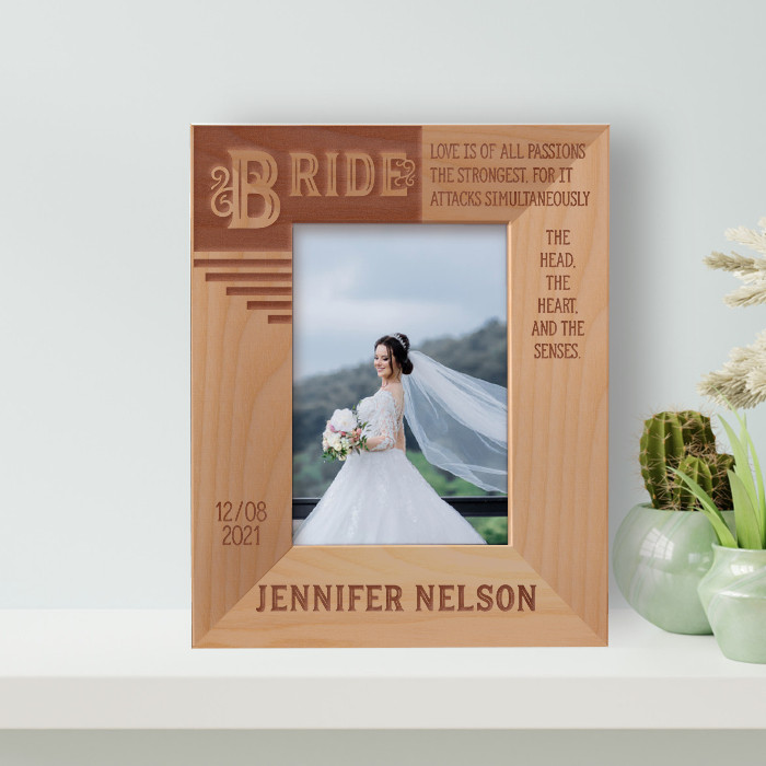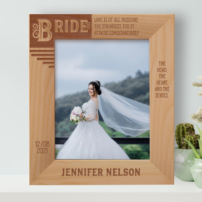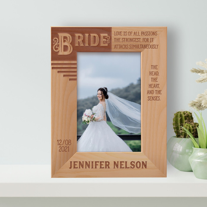 This personalized bride frame allows you to modify it in any manner you desire. As a result, presenting the gift to that special someone will undoubtedly brighten their day! This high-quality, personalized frame is available in a range of sizes and forms.