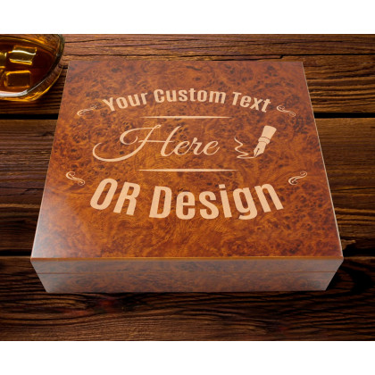 Personalized 20 Count Burl Cigar Humidor with Humidifier