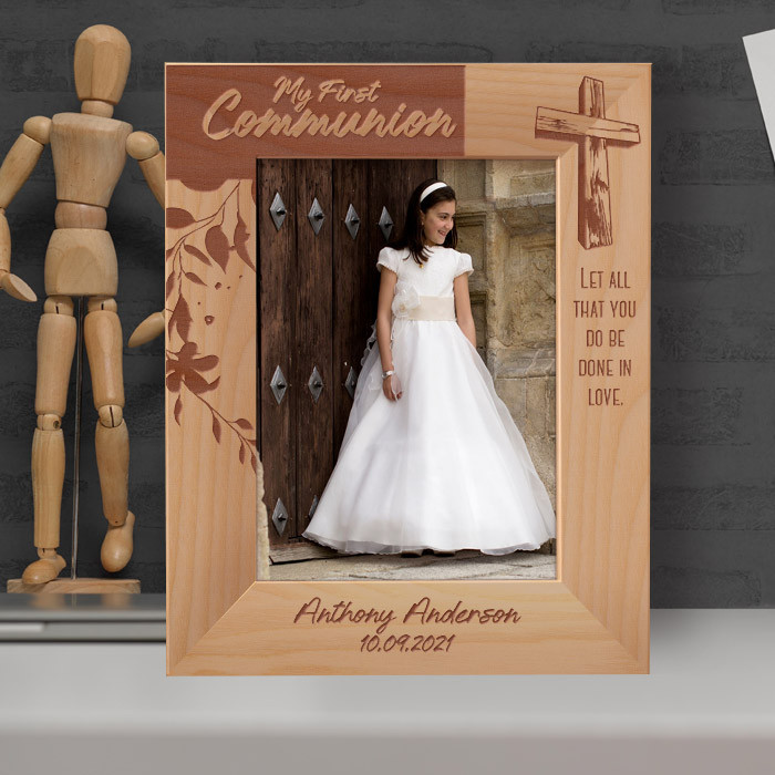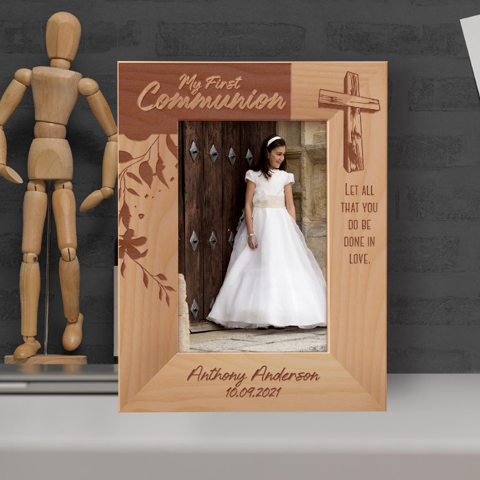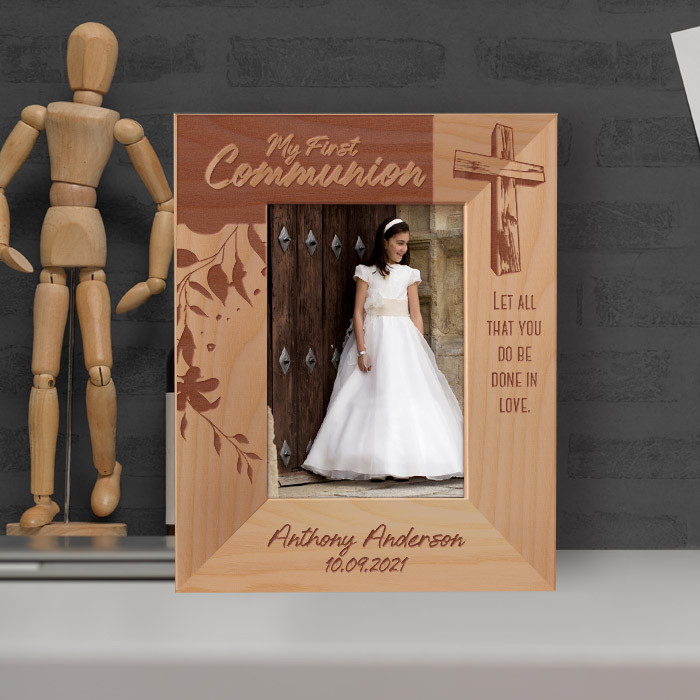 A frame built to keep precious memories safe. This personalized frame for my first communion is an elegant frame made of high-quality wood. This makes the frame extremely durable and long lasting. It is a beautiful and thoughtful gift to get someone special who just took the most important step in their religious life.
