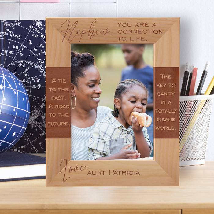 Are you looking for a gift for your nephew that will express to them how much you love and care about them? Well, this personalized frame gift is the perfect choice for your nephew! It is a highly customizable wooden frame that comes in different shapes and sizes. You can display your favorite photo with your nephew in style.