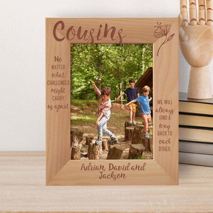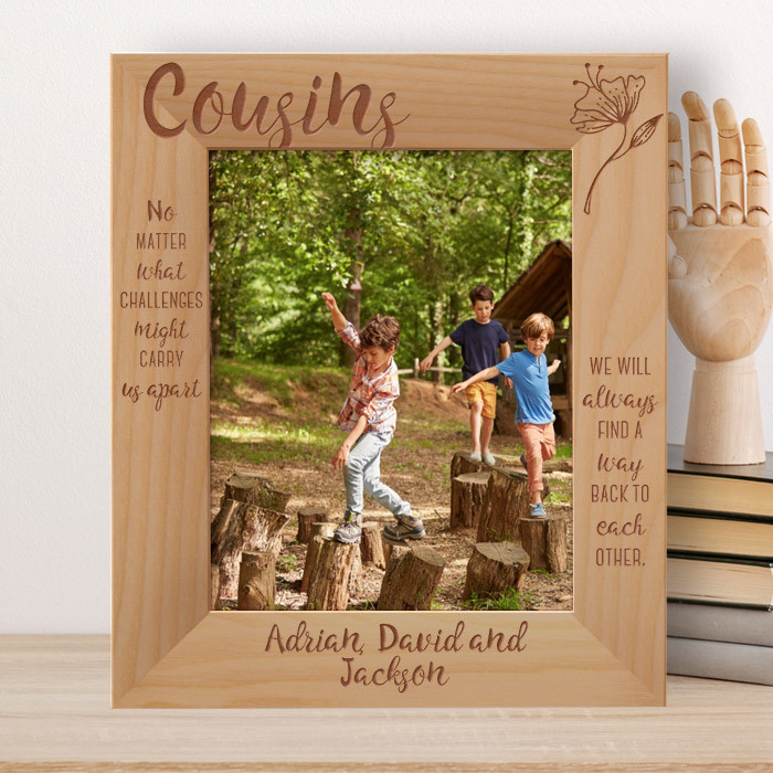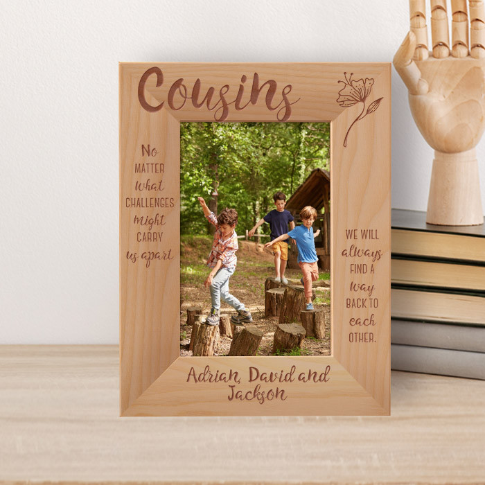 It comes with two easy to use options; you can hang the personalized frame on the wall or make it stand on any flat surface. Since it is a frame made of high-quality wood and crafted with perfection, it is something your cousins would love to display at their home.