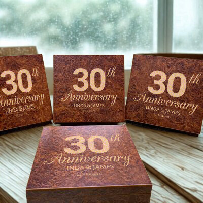 Luxurious Personalized Anniversary 20 Count Burl Cigar Humidor with Humidifier