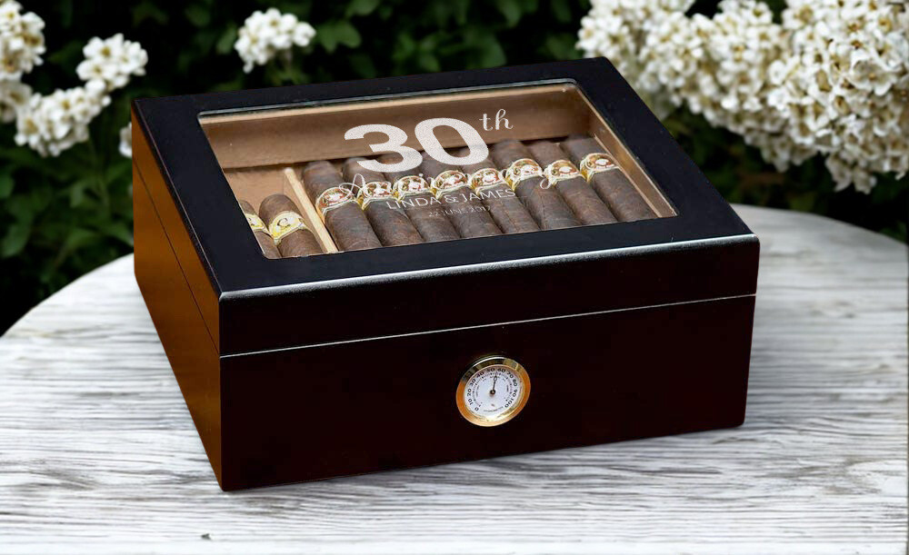 Personalized Anniversary Black Glass Top With Humidifier and External Hygro
