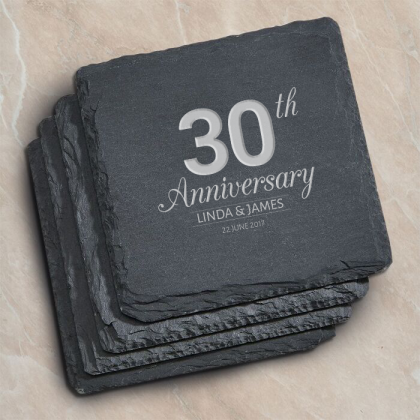 Personalized Anniversary Set of 4 Square Slate Coasters