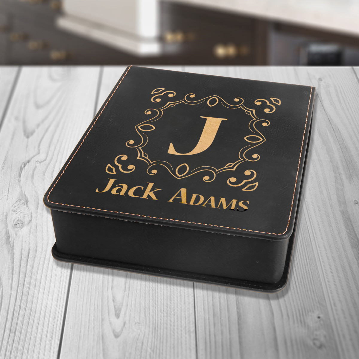The 3 wine tools are set in a black box made of faux leather on which gold engravings can be lasered. The inside of the leatherette box is lined with velveteen and the box has a magnetic closure. This wine tool gift set can be engraved with the recipients’ name, initials or a company logo, depending on the occasion. The set will make an impressive gender neutral gift during weddings, house warming, valentines, birthdays, bachelor parties. They will also be thoughtful gifts for real estate and mortgage clients.