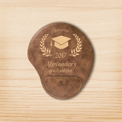 Personalized Graduation Rustic Leatherer Mouse Pad, Customized Graduation Mouse Pad with Wrist Support
