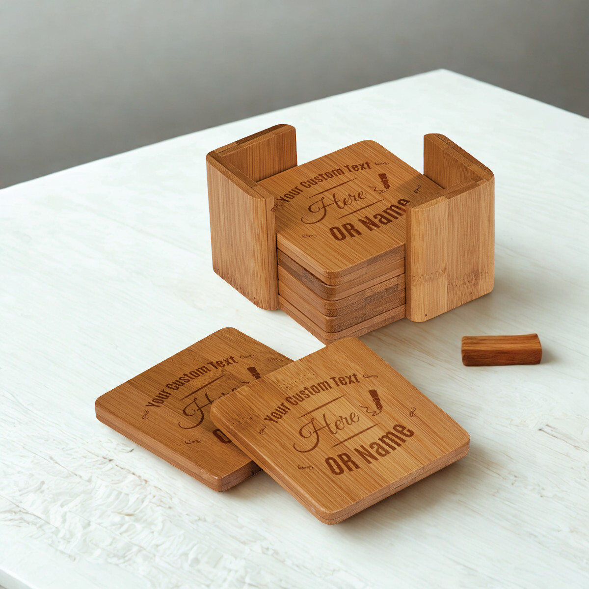 Personalized Bamboo Coaster Set of 6 with Holder