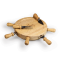 This functional cheese board is designed to look like a ship's helm. The stainless steel includes: 1 crumbly cheese chisel knife, 1 cheese fork, 1 blunt-tipped cheese knife, and 1 pointed-tip cheese knife aroused with rubber wood handles. With the four stainless steel cheese tools and side storage, this board is the perfect addition to your kitchen.