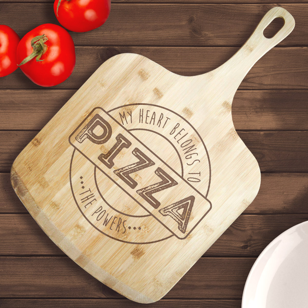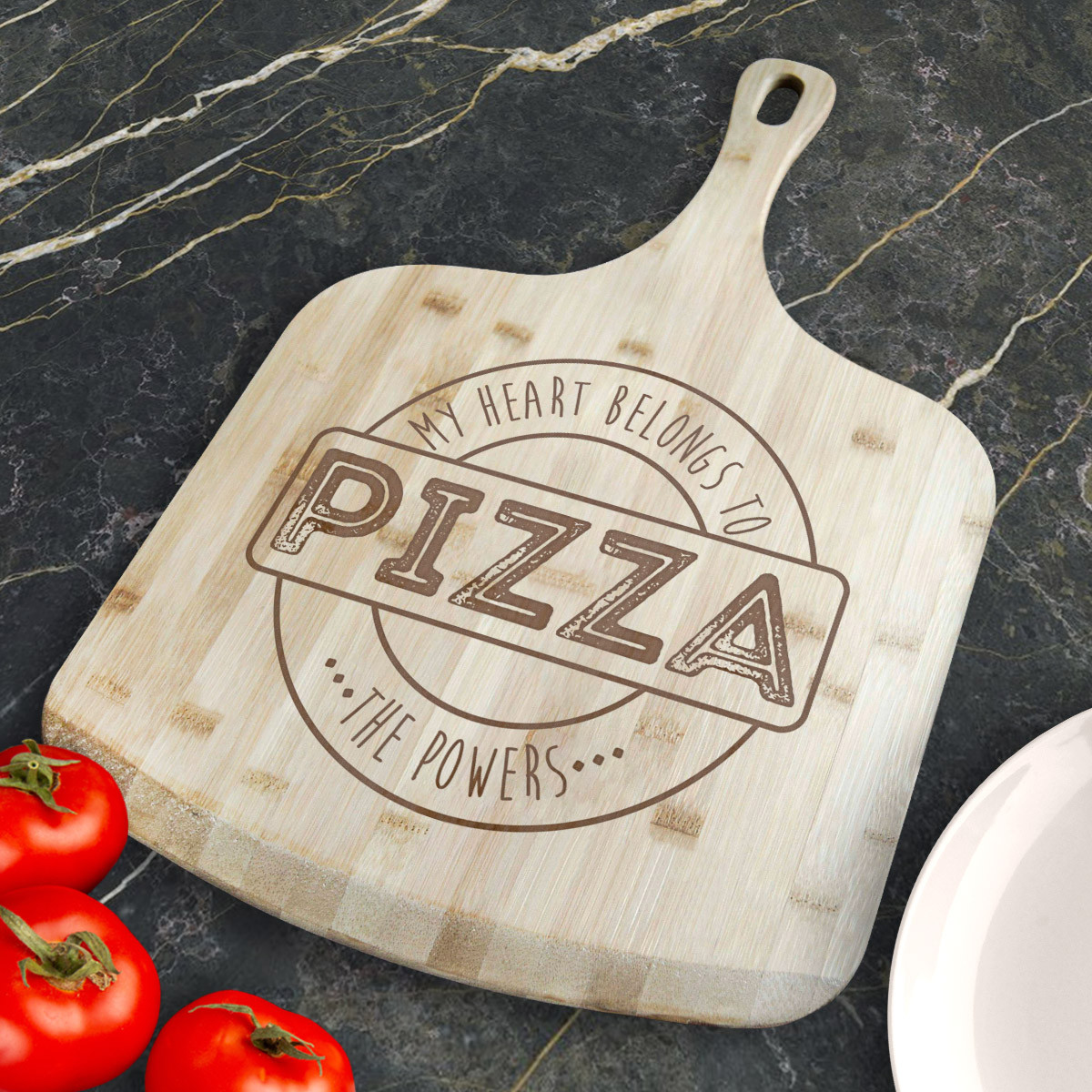 Personalized My Heart Belongs To Pizza Bamboo Pizza Board With Handle, Customized Wooden Pizza Board