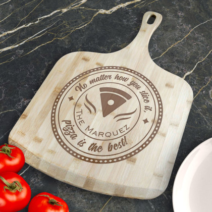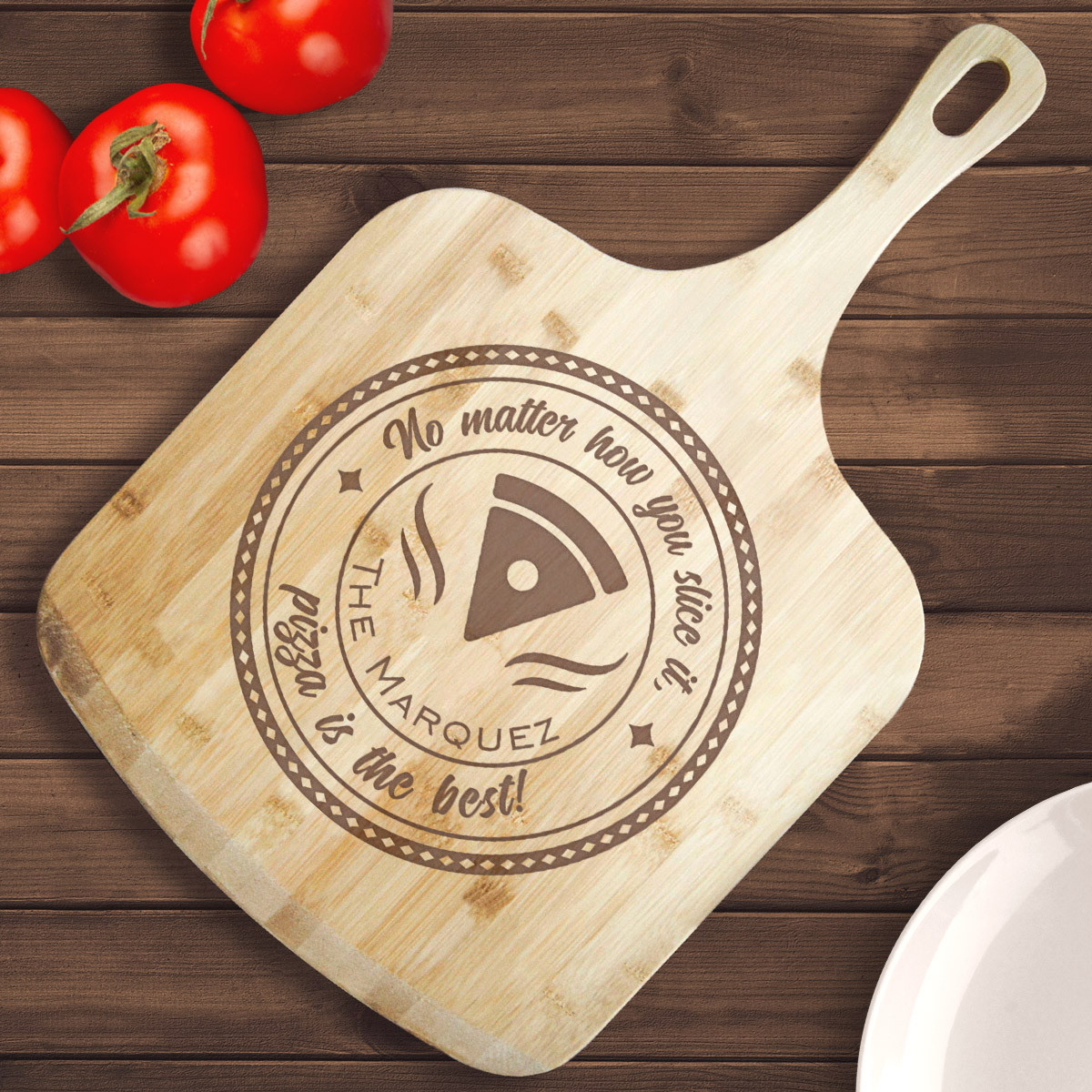 Personalized No Matter How You Slice It Pizza Is The Best Bamboo Pizza Board With Handle, Customized Wooden Pizza Board