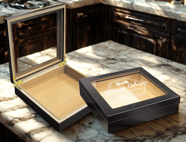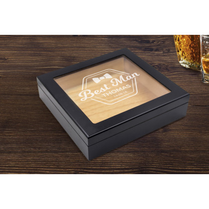 Personalized Best Man 20 Count Black Glass Top Cigar Humidor With Humidifier