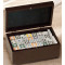 The set includes a complete double twelve set with 92 dominos. A set of double-twelve dominoes allows you to play some of the more complicated domino games. They can also be used to add variety to the simpler games, or to allow more people to play them. The Dominos are white with colored numbers. The Dominos cannot be engraved.