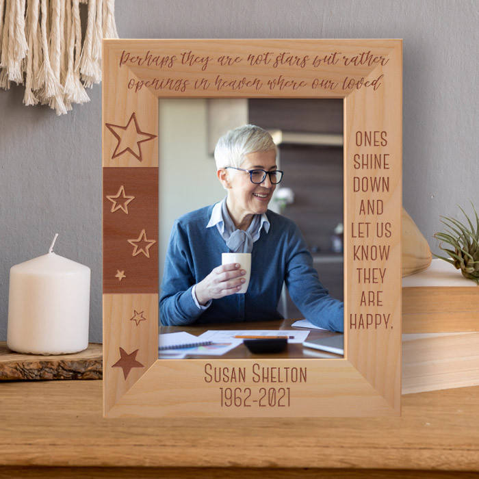 This personalized frame for memorial is a beautiful memorial gift for loss of someone very special. It is an ideal gift choice that can be given to someone who has just lost someone they love. This personalized frame will serve as a powerful daily reminder of a loved one who has passed away. It will help bring comfort and peace to those who are grieving.