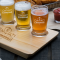 Personalized 4 Core Beer Flight Pub Taster Glasses with 4 Holed Rustic Wood Sampler Tray