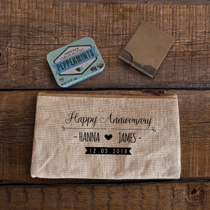 Personalized Anniversary Natural Rectangular Jute / Canvas Pouch with Zipper Closure