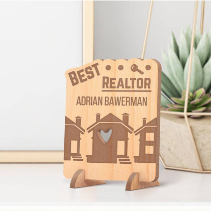 A hardworking realtor deserves recognition and appreciation. This Personalized Best Realtor's Name Wooden Gift card feat Love Hearts & House Detailmakes a great gift item to show support of your realtor, or provide a 'thank you' for their services.A great thank you gift, or even a Secret Santa Gift for the office party, you will bring a smile to the face of the lucky real estate agent.The card is made of alder wood and can be personalized with the realtor’s name or just and other graphic inscriptions. Not only will this wooden card serve as a fond keepsake gift, but it can double up as house décor and will look good placed on tables, shelves, counter tops, office desk, bedside table, etc.