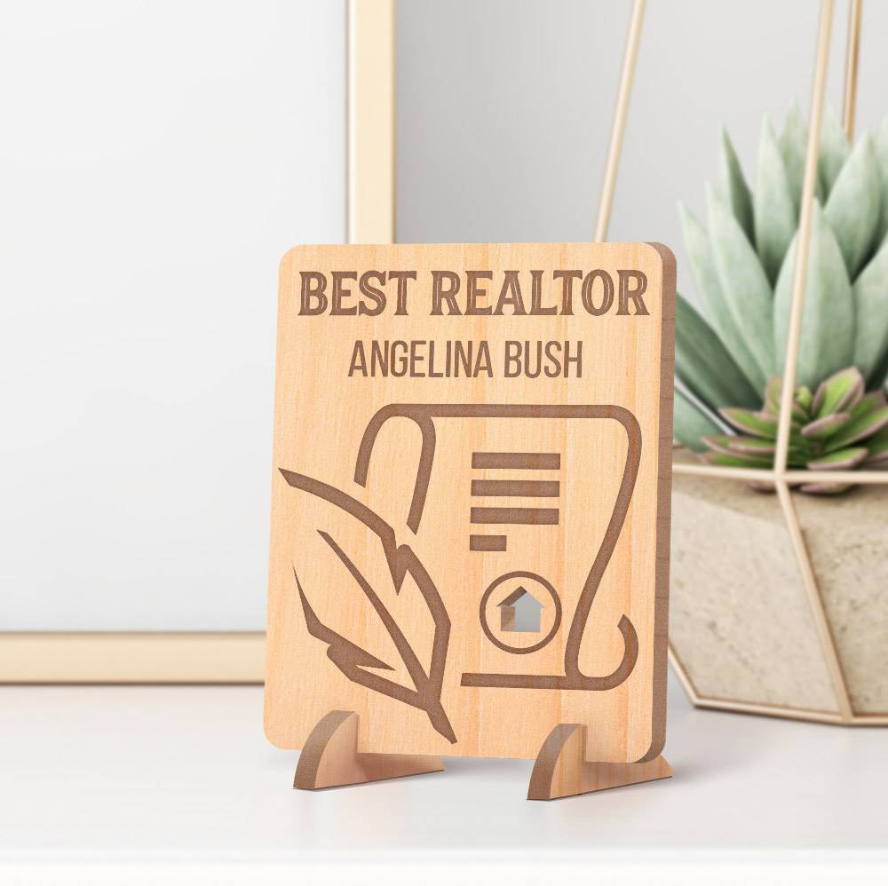 Personalized Best Realtor’s Name Wooden Gift card feat Office Files