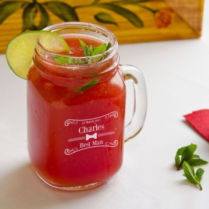 Personalized Bestman Mason Jar, Drinking Jar with Handle 16 oz