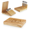 The fully personalized and contended asiago cheese board is not only a smashing accessory for those who love to entertain; it will make life easier as well with its versatile functionality. Featuring a large surface area for presenting scrumptious slices, a nifty ledge for arranging crackers, and an array of cutting and spreading tools! Lift up the top level of the board to reveal four brushed stainless steel cheese tools. The tools are magnetically secured to a wooden strip that lifts up so you can close the cutting board and display the tools