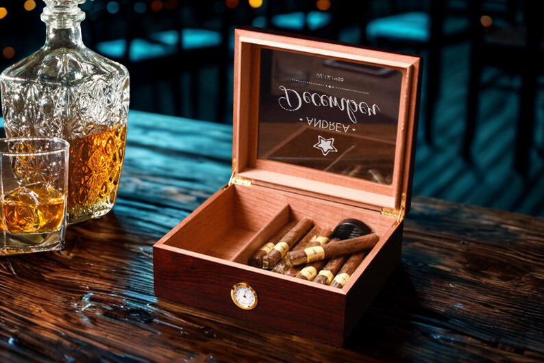 Personalized Birthday Cherry Glass Top With Humidifier & External Hygro with Birth Month