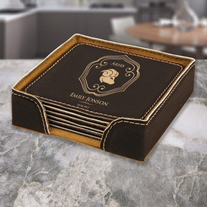 Personalized Birthday Coasters, Leather 6-Coaster Set, Birthday Zodiac Sign Gifts