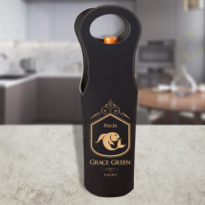 Personalized Birthday Wine Bag, Leather Wine with Zodiac Sign, Engraved Birthday Gifts
