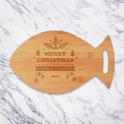 Personalized Christmas Chopping Board, Bamboo Fish Shaped Cutting Board, Customized Christmas Gifts