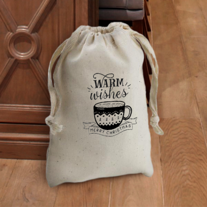 Personalized Christmas Natural Cotton 4" x 6" Drawstring Favor Bag