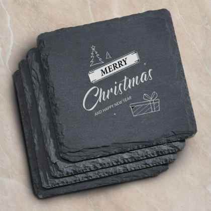 Protect your furniture from water rings with these fun personalized coasters. Constructed from slate, these coasters feature any design engraving. These customized coasters are available in a set of four and make a great gift. Protect your furniture from water rings with these fun personalized coasters.
